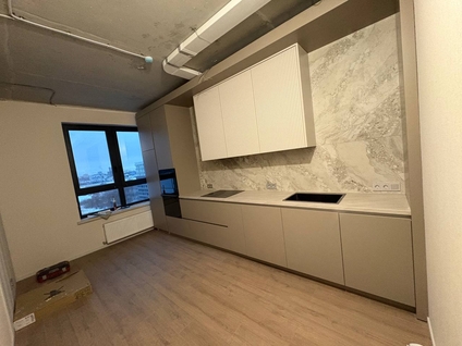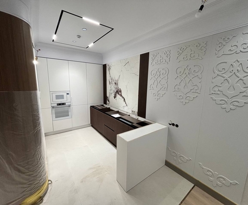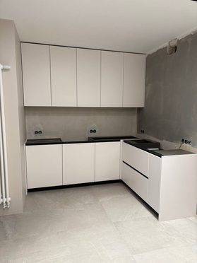 Благодаря слаженной работе команды и собственному производству фасадов, мы успешно выполнили задачу. При изготовлении использовалось фурнитура Blum, корпус выполнена из ЛДСП EGGER, фасады эмаль.